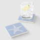 The coasters are gorgeous, a quality feel and heavy weight. They look like a precious archeological find. A rustic stone juxtaposed with a modern floral black and white print. I like the way the print goes slightly imperfect on the cut stone edges giving them a kind-of natural beauty.