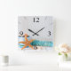 This pretty wallclock features a pail of clams & seashells, a gorgeous starfish and a delightful weathered beach sign full of french country charm. This modern clock is sure to garner oohs and aahs from all your guests. Matching wedding invitations, save the dates, cake & table toppers, postage stamps and more are also available! For questions or custom requests, contact: cheryl@cheryldanielsart.com. Design by Cheryl Daniels © 2014.