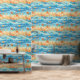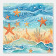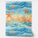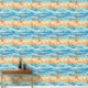 Beachy starfish, ocean, wave, and water sea life themed pattern in blue and orange.