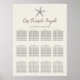 Modern Ivory Starfish Beach Ocean Destination Wedding 12 Table Seating Charts Poster. All the texts are pre-arranged for you to personalise easily and quickly with your own details.