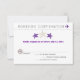 Boarding pass RSVP card to match the Starfish Wedding Boarding Pass invitation. COLORS ARE PURPLE AND TAN. Contact me if you have more cards you want with your invite (i.e., itinerary, accommodations, invitation etc) If the colour scheme is not what you wanted please let me know and I'll recreate that for you. paula@labellarue.com Please make sure you proof your design before submitting your order. If you have questions regarding the design please let me know and I'll be happy to assist you regarding the design however once the order is submitted you will need to contact Zazzle's customer service. Thank you! BE SURE TO PICK YOUR FAVORITE CARDSTOCK TO HAVE IT PRINTED ON!