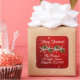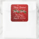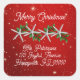 Starfish Christmas return address envelope seals.  Twinkling stars red stickers, in square shape, with starfish and holly design.  White, modern text is customisable in two places for a greeting, “Merry Christmas” and name and address.  Large size sticker is shown with smaller option.