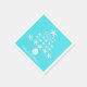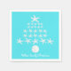 Aqua blue, tropical Christmas napkins. White starfish make a tree shape on bright blue paper napkins with white custom text at the bottom for the family name, or any wording.
