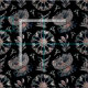 This is a fantastic ornament of starfish, jellyfish and seaweed on a black background.
