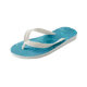 Kids flip flops perfect for all your summer fun, shown here in a pretty blue starfish print with white straps and white soles.