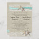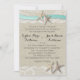 Rustic burlap and lace with starfish and aqua ribbon wedding invitation.
