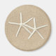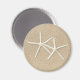 This summery, beach magnet is decorated with two starfish on a beach sand background, making it a fun decoration at the beach or lake house.