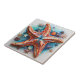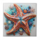 Whimsical starfish of orange and blue hues with white background. Perfect for your beach house's coffee table or bathroom!