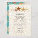 Dinner Menu cards for formal wedding receptions, bridal showers or your business events. COLOR PALETTE: turquoise, aqua blue, cream, tan, red, and brown. DESIGN COLLECTION: A wedding invitation set with complete product ensemble for all your needs. These beautiful coastal beach gathered, ocean growing seashells, sea shells were hand watercolored by Audrey Jeanne Roberts and are delicately rendered with great detail. There are several varieties of starfish, a scallop shell, and the inside view of a Nautilus shell. A variety of starfish have been delicately rendered with great detail as the dance across the top and sides of each of these wedding invitation set items. Easy to customise and personalise these invitations with your personal invite event text by using the easy template fields. Perfect for a chic, beachy styled destination wedding by the ocean, in the Caribbean, Mexico, the tropics or at the shore.