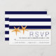 Starfish and navy blue white stripes beach wedding RSVP response card. The navy blue and white striped pattern and the starfish on the corners of a white frame with your text adorn this elegant summer wedding card.