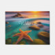 Orange Starfish in a tidal pool as the sun rises in the distance