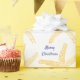 Printed with golden yellow starfish patterns in white background with text template for 'Merry Christmas'!