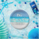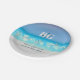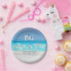 A beautiful photograph of a sandy white beach infused with a starfish and bubble graphic with crystal clear turquoise blue water and a sunny blue sky on which the bridal couples initials appear.