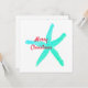 Printed with greenish blue starfish patterns in white background with text template for 'Merry Christmas'!