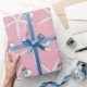 Tropical themed, pink Christmas wrapping paper with big white starfish and ornament design. An unconventional holiday colour with design meant for those living in a warm climate. Choose a roll length and impress recipients with this high quality wrapping paper.