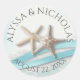 Starfish Ribbon and Lace Ocean Blue Wedding Classic Round Sticker