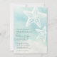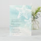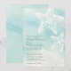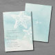 Simple Seaside Watercolor Summer Beach Wedding Invitation. A calming blue and tan watercolor background sets the stage for an elegant seaside wedding vibe. The background is a watercolor that fades from shades of teal blue to an off-white almost tan to give the appearance of the beach or ocean waves. Two white starfish outlines give a seashell look. It's not an over the top and literal interpretation, but a slightly abstract coastal setting. Sweet script typography mixed with a simple modern font for an elegant but laid back and casual vibe. The fonts are a dark blue green colouring to match the invitation background (just a darker hue of the blue), but you can change them to whatever you'd like. On back is a simple initial monogram with the starfish. Available as a printed invitation, or as a downloadable digital invite that you can send in e-mail or have printed locally!