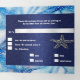 This chic, elegant and stylish budget-friendly invite has a soft pastel and medium blue starfish pattern with dark blue inlays on which white templates appear for your personalised wording. The middle section has a faux silver square frame with a template for a colour photo of the bridal couple. This unique and tres chic design is ideal for under the sea; coral reef; tropical island; coastal destination and nautical theme weddings.