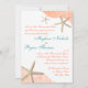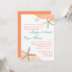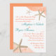 Starfish wedding invitation in orange and aqua or change text and background colour to match your beach theme wedding style.