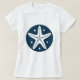 An illustration of a starfish surrounded by white stars inside of a black circle. The illustration makes it look like it is nighttime.