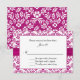 Elegant floral wedding invitation, with a violet pink on white lily floral damask pattern, graphics of a violet pink satin ribbon runs under a pink framed white text area. Custom black text ready to personalise for your special day. Matching products are available.