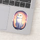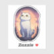 A curious white cat gazes at the starlit sky, perched on a rock against a breathtaking sunset backdrop. With its wide, hopeful eyes and serene expression, this charming illustration captures the magic and wonder of nature. Perfect for adding a touch of whimsy and warmth to your home decor or accessories.
