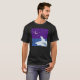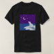 A white arctic polar bear cub with bright blue eyes sitting on the snow gazing up at the crescent moon and stars in the deep purple night time sky over blue icy waters. Original animal art by Alicia Marie.
