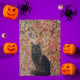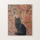 Staring Black Cat Photo with Orange Autumn Leaves Jigsaw Puzzle