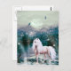 Step into a dreamlike realm with this ethereal artwork featuring a majestic white unicorn standing gracefully by a moonlit lake. Surrounded by sparkling stardust and shimmering light, the unicorn glows with an otherworldly aura, its mane flowing like silver silk. Behind it, a luminous full moon hangs in a twilight sky, casting reflections across the still waters and silhouetting the dense, enchanted forest.