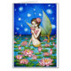 Beautiful koi fish mermaid in pond surrounded by lilies and the stars up above.