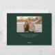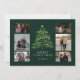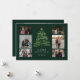 An elegant family photo holiday card with 7 custom photos and personalised greeting. The front of the card is dark forest green and says "Wishing you happy holidays and a very Merry Christmas" in white calligraphy font lettering.