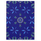 This artwork features a vibrant and symmetrical abstract pattern set against a deep indigo blue background. The design combines floral and geometric elements, with luminous petal-like shapes arranged in radial formations, resembling stylized flowers or starbursts. These petals glow in shades of electric blue with subtle green outlines, creating a dynamic sense of depth and energy. Scattered between the larger motifs are small clusters of iridescent, bubble-like orbs in rainbow hues - red, teal, pink, and green - adding a playful and futuristic touch. At the centre of the composition is a kaleidoscopic mandala-like formation made up of these same glowing spheres, anchoring the design and enhancing its hypnotic symmetry.
