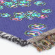 This artwork features a vibrant and symmetrical abstract pattern set against a deep indigo blue background. The design combines floral and geometric elements, with luminous petal-like shapes arranged in radial formations, resembling stylized flowers or starbursts. These petals glow in shades of electric blue with subtle green outlines, creating a dynamic sense of depth and energy. Scattered between the larger motifs are small clusters of iridescent, bubble-like orbs in rainbow hues - red, teal, pink, and green - adding a playful and futuristic touch. At the centre of the composition is a kaleidoscopic mandala-like formation made up of these same glowing spheres, anchoring the design and enhancing its hypnotic symmetry.