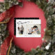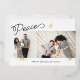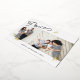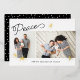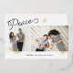 Elegant and modern holiday photo card features two favourite photos aligned side by side, with "Peace" in black handwritten style monoline script typography, accented with hand drawn stars in shining gold foil. Personalise with your custom greeting and name in a mix of italic and block lettering. Card reverses to a snowfall pattern in white on black.