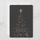 Elegant flat holiday cards for your business feature a faux rose gold foil Christmas tree made up of snowflakes and stars, against a rich charcoal grey background. Personalise with your custom holiday greeting and business or company name, and add a custom message to the contrasting cameo blush pink back, along with the year. A chic choice for small businesses or larger corporations in a modern, elegant colour palette with festive holiday accents.