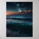 A surreal poster blending ocean waves and cosmic skies with glowing stars, creating a magical and otherworldly vibe.