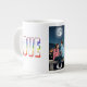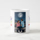 A romantic and dreamy Coffee Mug design featuring a young couple gazing at each other under a starry night sky. The couple's peaceful expression and the stunning city lightscape create a captivating and nostalgic image.