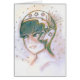 A new April 2011 addition the popular ARTBYSONYA Deco Girls collection, this original sketch entitled STARRY FLAPPER depicts a young flapper girl with the trademark short dark hair wearing an elaborate cap featuring large stars and a bow with feathers to the side, with more stars surrounding her. This version of STARRY FLAPPER has been given a digital tint to give it a unique look with its unusual mix of orange, blues and greens. The original black and white version is also available.