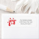 This festive design features bold red hand lettered text and hand drawn red stars.