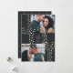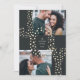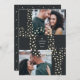 An elegant and unique holiday photo card design featuring two horizontal or landscape orientated photos aligned at the corners, with "JOY" overlaid in starry lettering on a contrasting dark charcoal background. Personalise with your family name and the year in the centre.