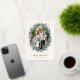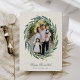 Send Hanukkah greetings to friends and family in chic style with our elegant photo cards. Your favourite vertical or portrait orientated image is framed by an oval laurel wreath of green watercolor eucalyptus leaves on a warm ivory background accented with gold foil stars. Personalise with your custom holiday greeting and names beneath.