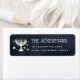 Festive return address labels for your Hanukkah cards and seasonal mailings feature your name and return address alongside a lit menorah illustration accented with stars.