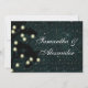 Pretty outdoor scene of midnight sky full of stars and constellations in a celestial atmosphere, great matching wedding invitation set for an outdoor summer wedding . Silhouette of a tree with lanterns and light bulbs dangling stringed along the tree. Very vintage and rustic. Design Copyright © CustomInvitesOnline.com
