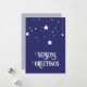 Simple and classic card with a modern twist. Blue and white with stars hanging on a string. Stars are surrounded by bokeh light bubbles in the background. Text on front is changeable. The back of the card contains your message and business name. Colour is a soft blue matching the bokeh light bubbles with dark blue text matching the dark blue on the front of the card. Make your holiday greeting easy this year with my classic and contemporary design that you edit once and then mail. Also available as a download for email your holiday card, a less expensive and eco-friendly alternative.