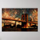 An otherwordly view of the famous landmark Brooklyn Bridge in New York City. Layered with a photograph of a galaxy from NASA/courtesy of NASAimages.org