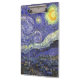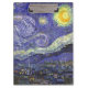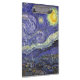 Starry Night by Vincent van Gogh is a vintage fine art post impressionism landscape cityscape painting featuring a view of Saint Remy, France from van Gogh's asylum. The night sky is swirling with clouds with a bright crescent moon and shining stars over the quaint village. Starry Night is probably van Gogh's most famous painting and was painted during the day from memory.