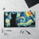 Embrace the enchanting spirit of Vincent van Gogh's Starry Night with our vintage-inspired cat rendition. This fine art painting, blending elements of impressionism with the charm of a feline companion, captures the essence of the renowned landscape in a delightful and whimsical display. Elevate your space with the timeless allure of this exquisite piece today! Generative content.