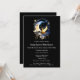 A plain, simple yet elegant mystical design featuring a glowing half moon behind the silhouette of a couple standing on grey clouds surrounded by a night sky filled with shiny stars and small moons. Pale grey text templates appear below the graphic on a midnight black background which may be changed to any colour of your choice. This chic AI graphic is ideal for moon and star, sailor moon, celestial, starry night and mythical or fantasy weddings, birthdays and special events.