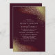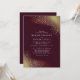 Invite your guests to a celestial celebration of love with our "Starry Night Deep Crimson Wedding Invitation". This majestic design features a deep crimson backdrop that fades into a galaxy of gold stardust, reminiscent of a night sky alight with constellations. The sprinkling of stars cascades down, creating a gradient effect that captures the romance and mystery of an enchanted evening. Elegant typography announces your union, floating amidst the cosmic display, promising an event as unforgettable as the cosmos. This invitation isn't just a call to a special day—it's a journey to a night where your love is the brightest star in the sky.