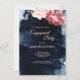 This Starry Night Floral engagement party invitation inspires either a midnight summer theme or a dark winter of snow theme, making it a seasonally versatile design. The navy blue, almost black, watercolor with a celestial star or snowflake filled sky, combined with the pop of minimal pink flowers and calligraphy is sure to speak to the magic of your celebration, regardless of the time of year.